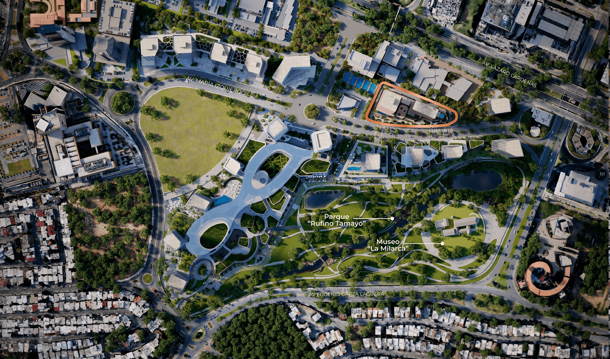 LUMARIS integra de forma natural el Parque Rufino Tamayo a la vida cotidiana, con dos propuestas residenciales conectadas por un basamento comercial, pensado para quienes buscan más que un hogar: una comunidad auténtica que lo ha entendido todo.